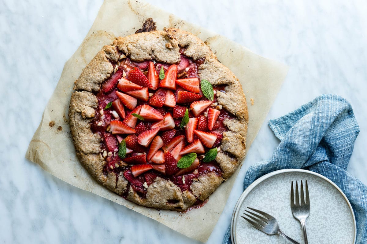 Strawberry, Pecan and Goat Cheese Galette with Rhubarb Compote